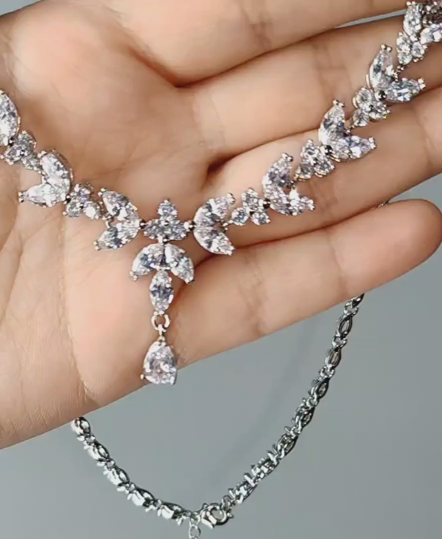 Marquise Leaf Bridal Necklace and Earrings Adjustable Set