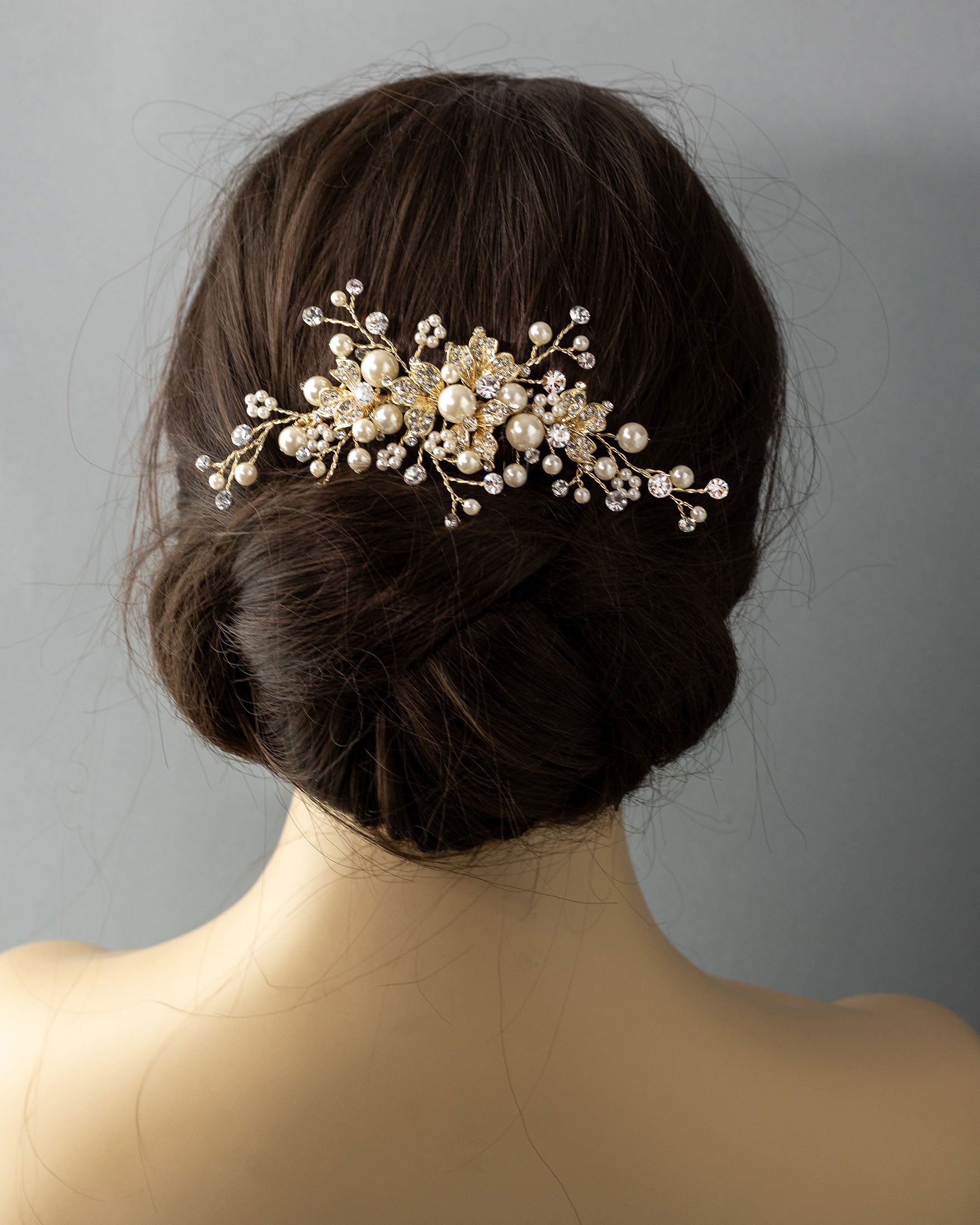 Floral Inspired Pearl Bridal Comb in Gold - Cassandra Lynne