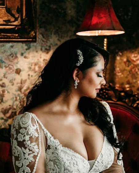 We can customize headpieces and some jewelry styles to a certain extent. Would you like to add pearls or crystal beads to an existing piece? We can do that! Looking for a different plating color? We can't do that. Reach out to us with the style and what you would like to do, and we can let you know the time frame and cost.