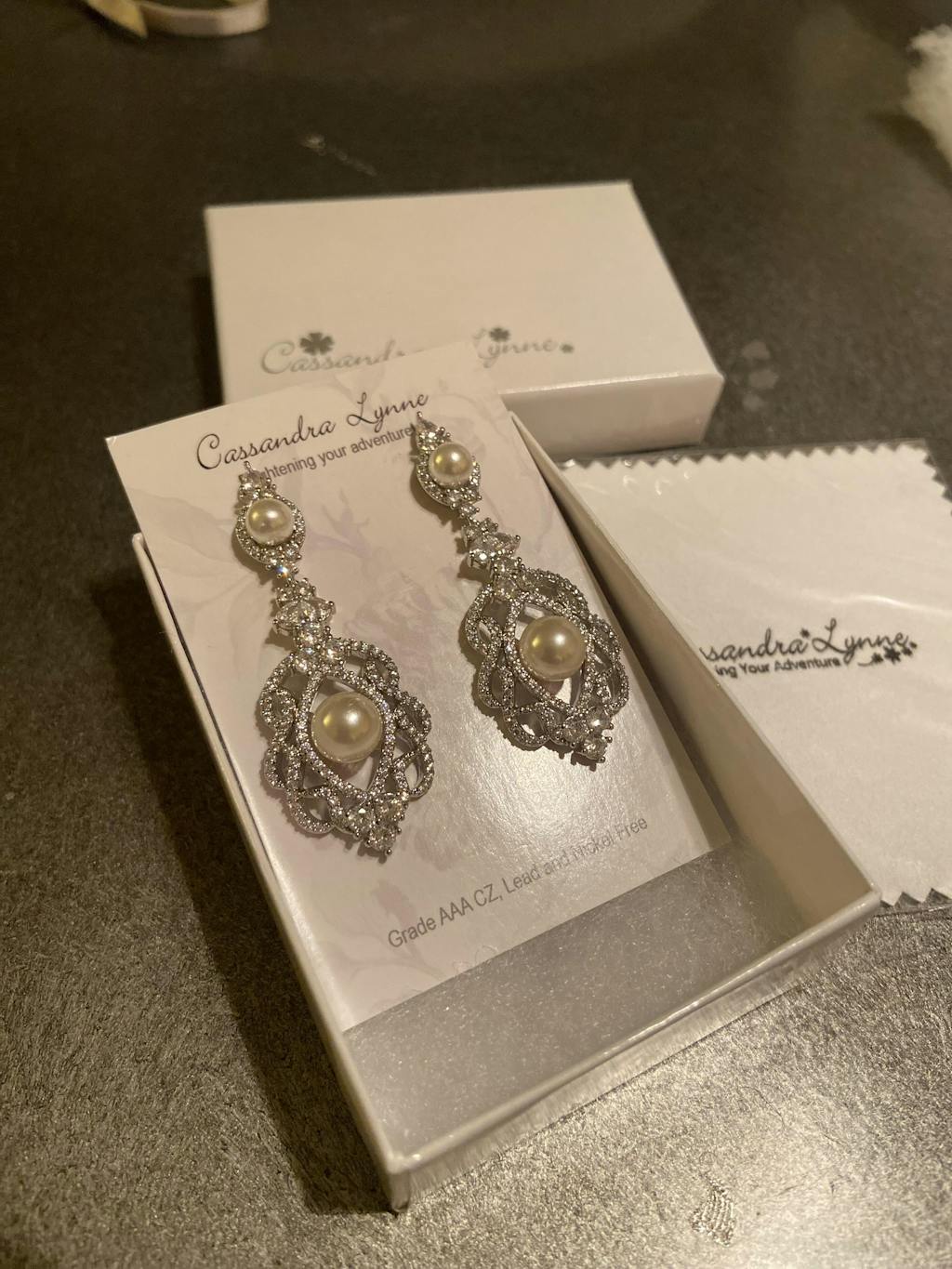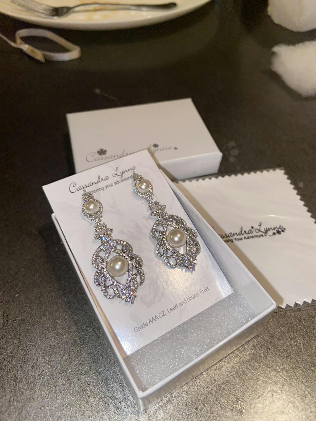 I'm in love with these earrings! I can hardly wait to wear them on my wedding day, they are truly beautiful. The quality is amazing and I love the packaging that it came in.